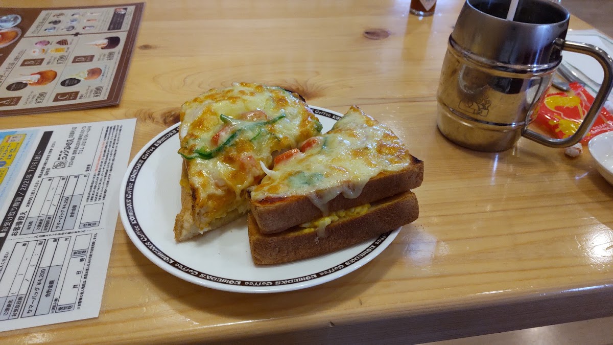 Speaking of food and drinks, the menu at Komeda's Coffee is a delightful assortment of both classic and unique options. Start your day with their morning set which includes fluffy, freshly baked bread—an utter delight no matter the choice, as noted by satisfied customers. If you have a sweet tooth, the an bread paired with their carefully brewed coffee is a must-try. For those looking for something heartier, customers rave about the ヒレカツプレート (fillet cutlet plate), which is said to be generously served with crispy vegetables and succulent meat. With options like the satisfying pizza toast and robust blended coffee, your taste buds are sure to be delighted.